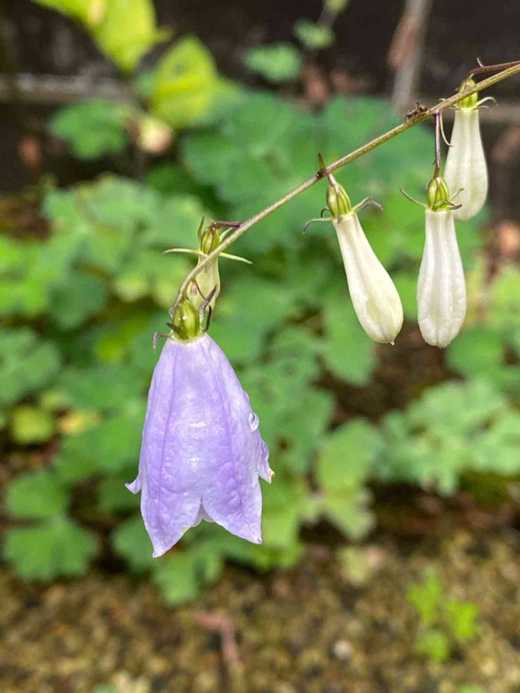 出がけにもう一度庭のパトロールしたら、姫沙参(ヒメシャジン)が咲いているのを見つけました。こっそり咲いているから、見落とすところでした😅