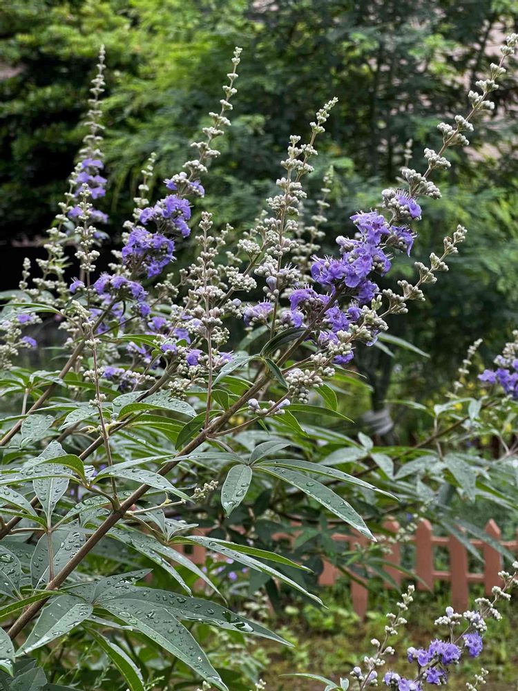セイヨウニンジンボクの青紫のお花がポツポツ咲いてきました♫
