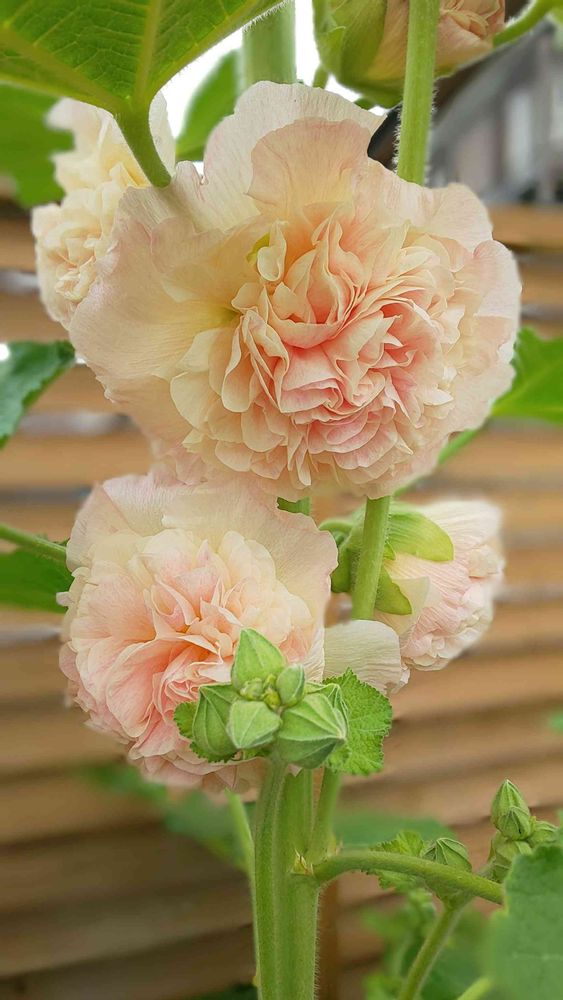 去年植えた、ホリーホック ピーチドリームスが咲いてくれました~😆