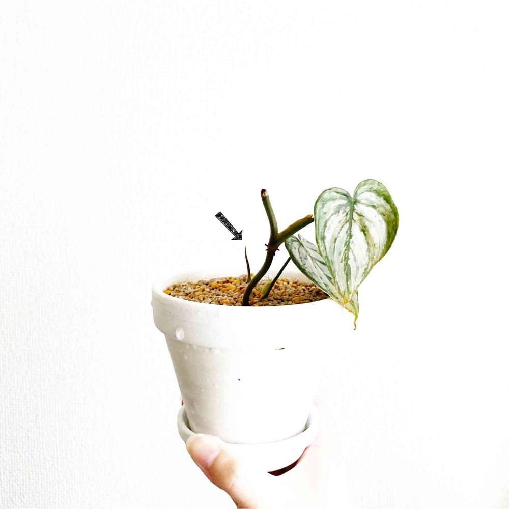 2枚の葉を付けたカット苗でしたが…まぁうんともすんとも言わず…やっとこないだ発根したと思ったら、新芽も出してきましたー🌱👏