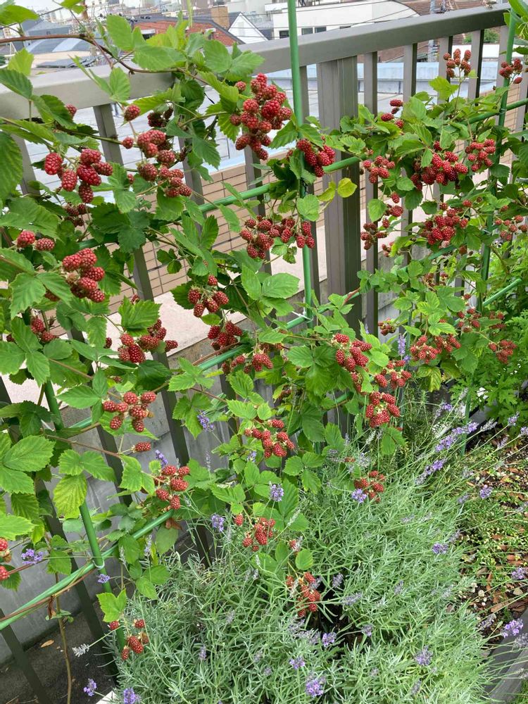 たわわに?実ったブラックベリー❤️〜🖤自作トレリスに絡ませて、去年の3倍ほど✌️