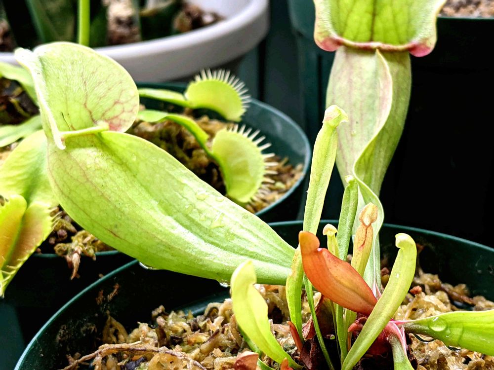 見事に真っ赤に染まっていたサラセニアのかわいらしさに、思わず買ってしまったのは去年のことでしたが、今年になって出てくる捕虫葉はみんな綺麗な緑です。