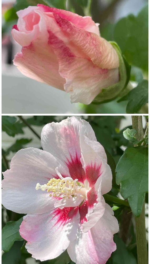 可愛い💕ムクゲが咲きましたね。素敵な色合いです。すぐに夏ですね。