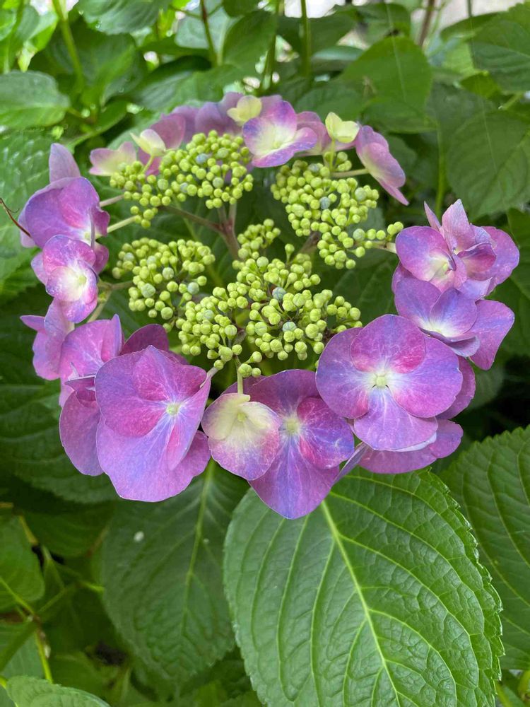 紫色の額紫陽花が美しく咲いてます。