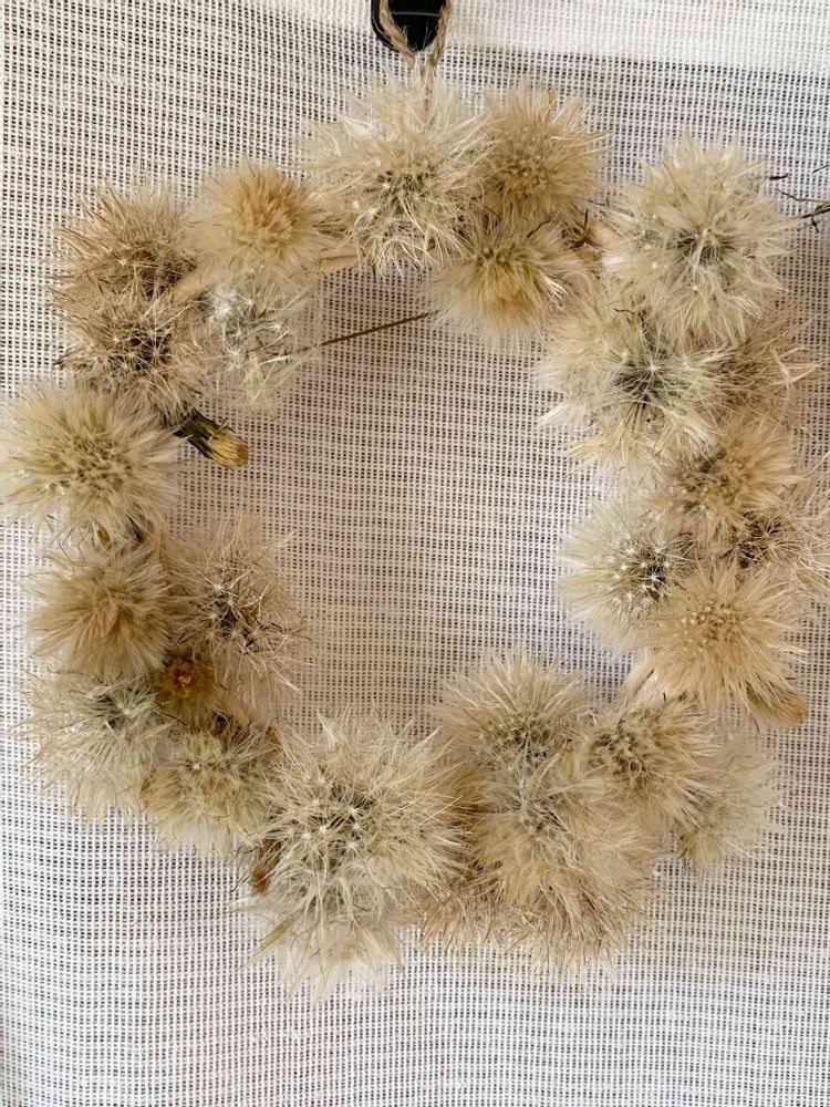 おきょうさん、こんばんは🌃たんぽぽのリース😉かわいいですね(◕ᴗ◕✿)私は、昨年リース作りましたよ😃沢山、蕾のうちに、摘んでリースに挿していきました。あとから、開いたら、ハードスプレーでかためましたので、飛ばないですね。最近まで、飾ってましたが所々抜けてきたりして、おしまいにしました😆。また見せて下さいね👋👋😃。