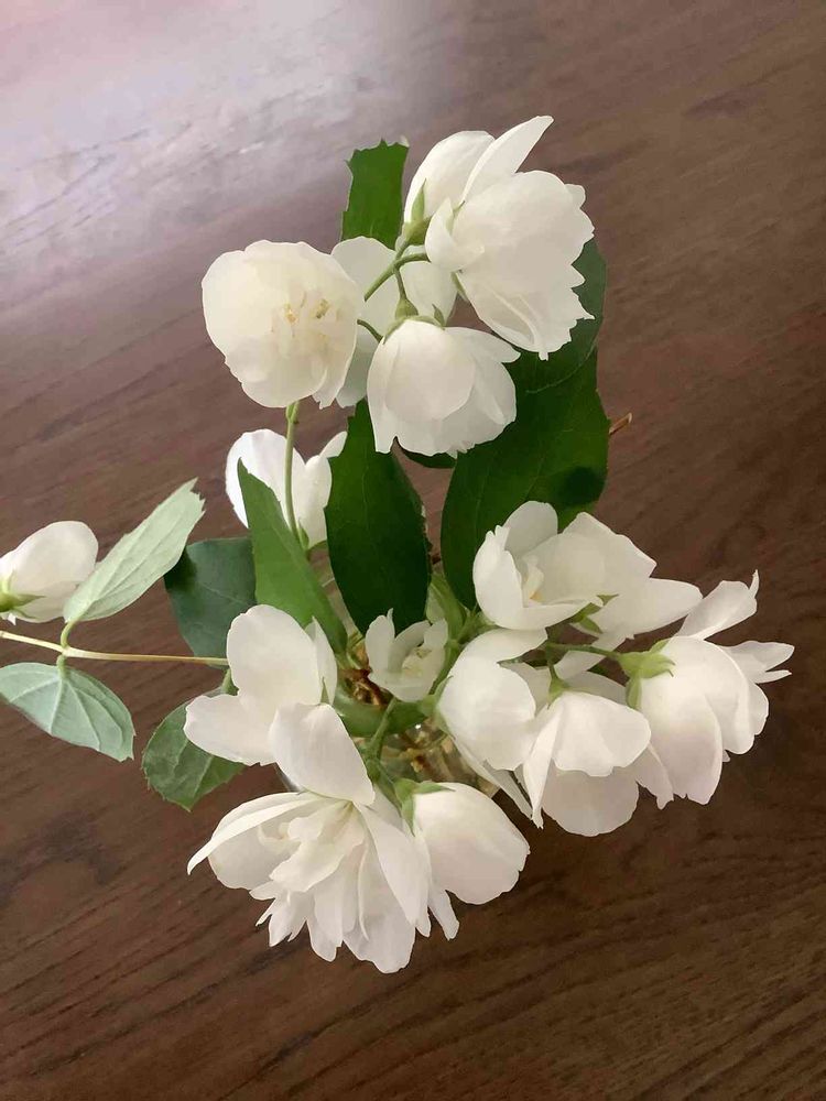 バイカウツギの素敵な香りを楽しみたくて、庭の奥から室内へ連れてきました。