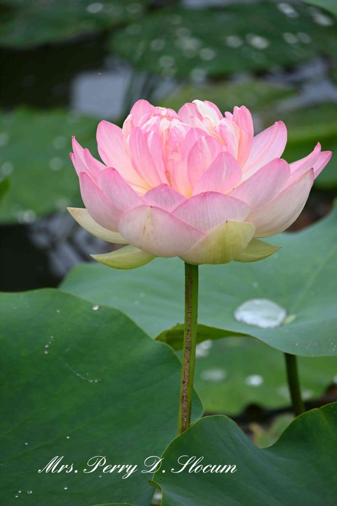 ミセス・スローカムは、ハス園の中でもひときわ目立つ華やかで美しいハス。
