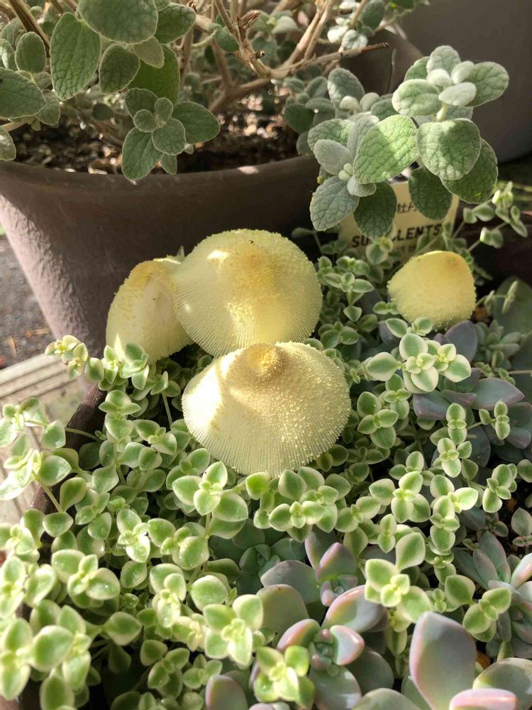 毎年この時期、どこかの鉢から雨上がりの日にもこもこきのこ🍄が出てきてる🤣