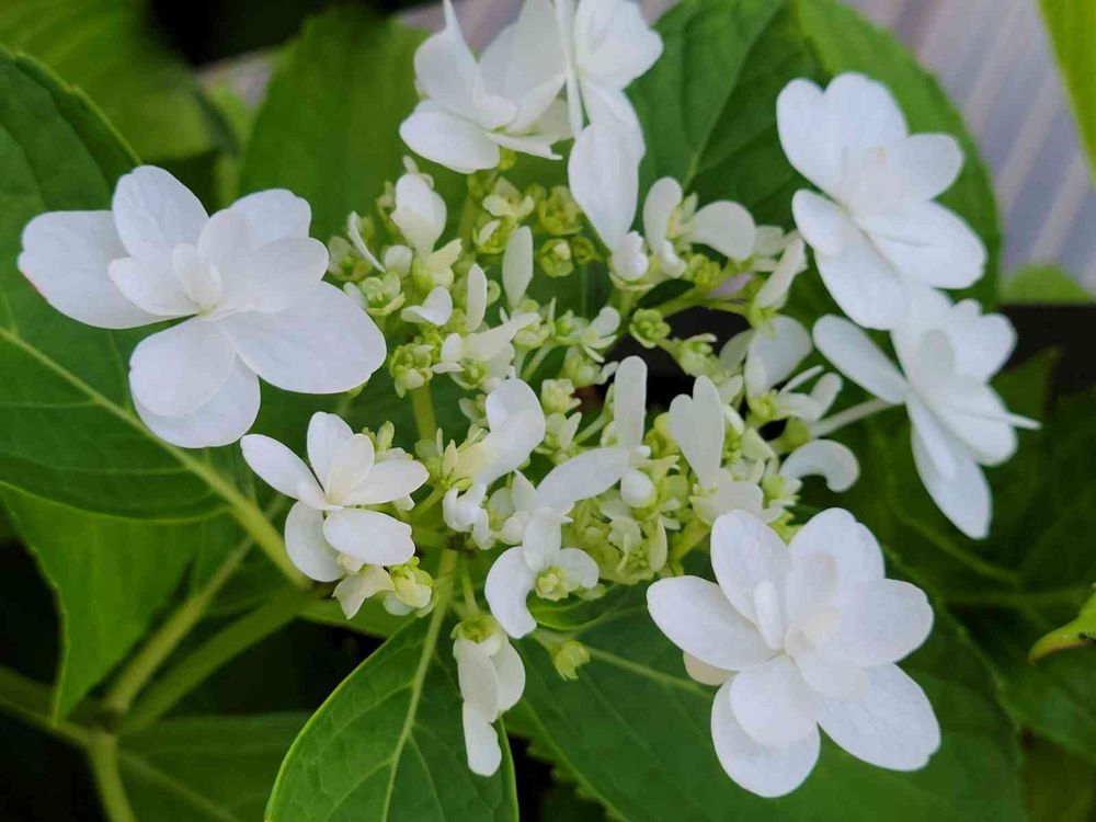 ウェディングドレス、ベランダの紫陽花マダマダ咲いている!