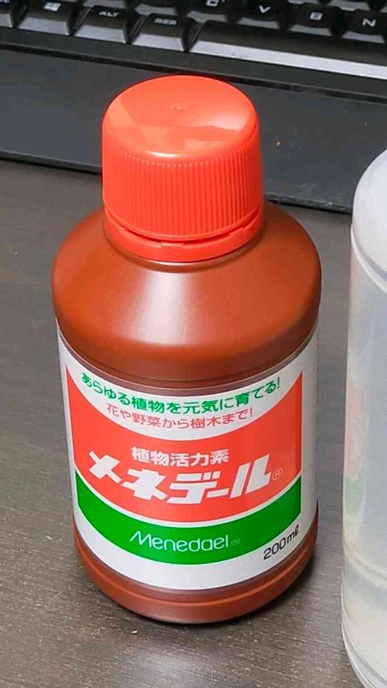 挿し木ちゃんたちの水換えのタイミングでメネデール使ってみた。水は熱帯魚の水槽から拝借したので栄養分も微生物もたっぷりなはず。