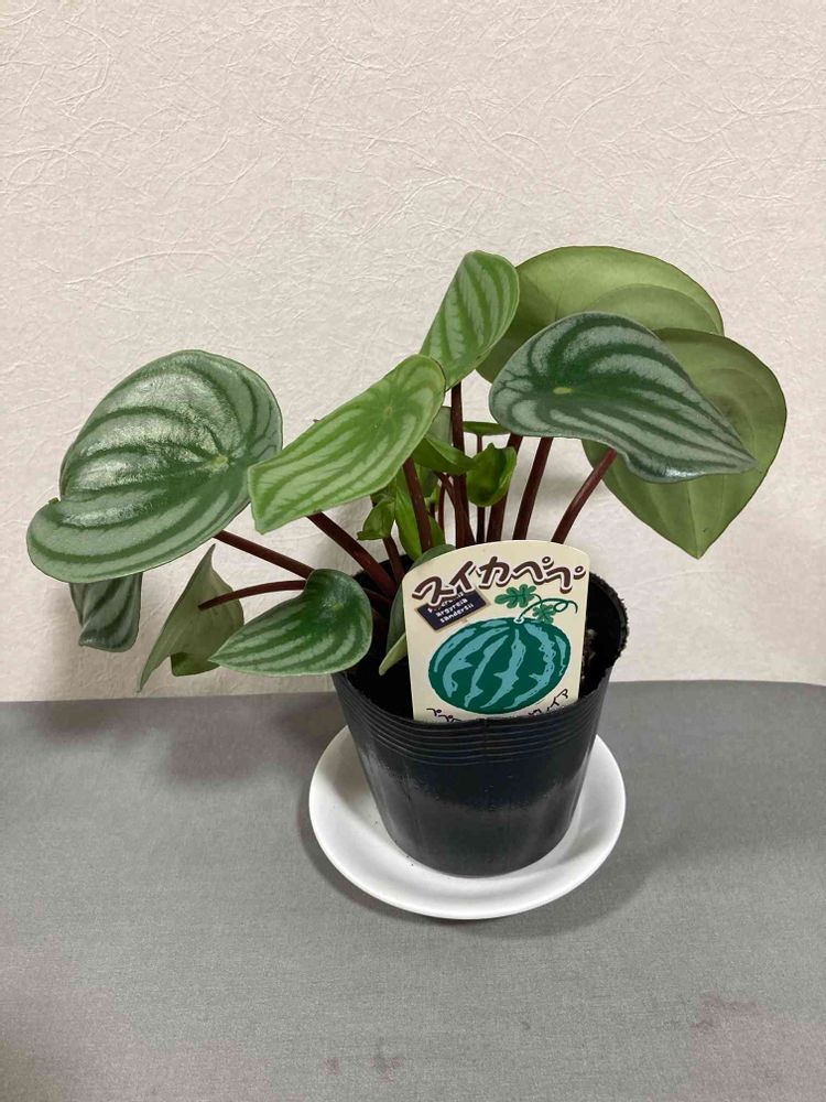 もう外で育てるのは手狭な我が家は、お迎えが無理なので、室内で育てる【ペペロミア・アルギレイア サンデルシー】のスイカ🍉柄の通称、スイカぺぺ❣️