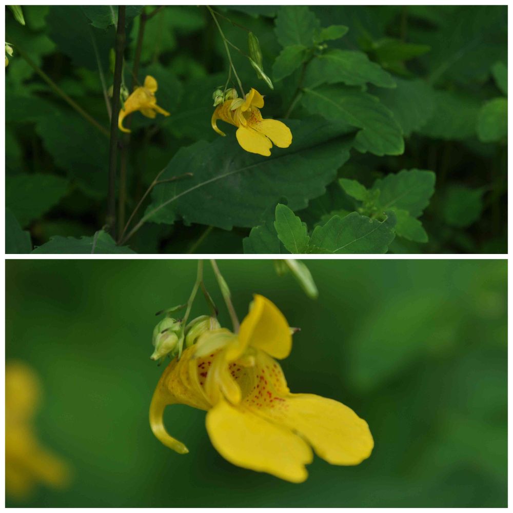 道路の向こうに黄色い花が咲いてる。近づいてみるとなんと「キツリフネ」😲こんな道路沿いに…意外なところで初めましてでした🤭