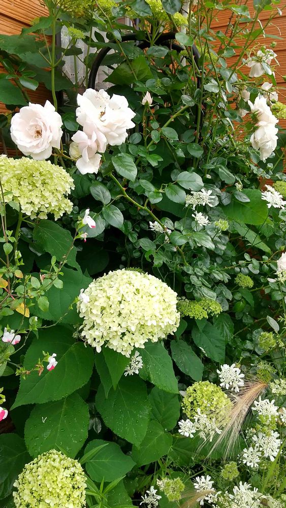 アナベルが色づいてきましました💓毎回同じくニュードーンとのコラボ😊💕