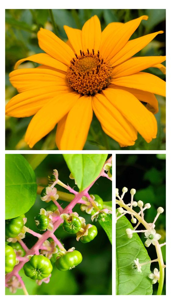 ヒメヒマワリ,ヨウシュ ヤマゴボウ,スマホで撮影の投稿画像