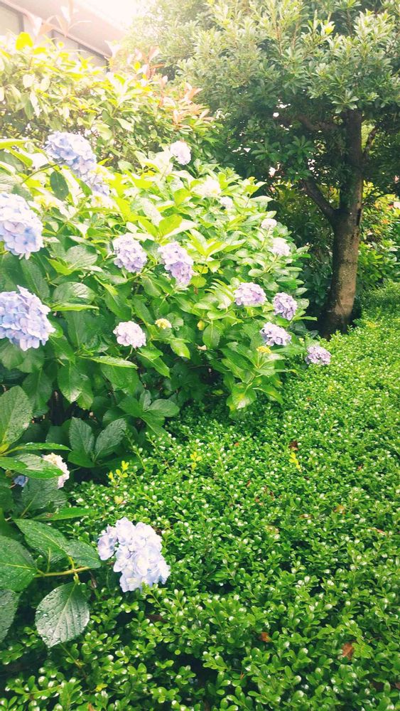 朝の澄んだ空気の中、雨露に濡れた紫陽花がシットリいい感じでした❤️