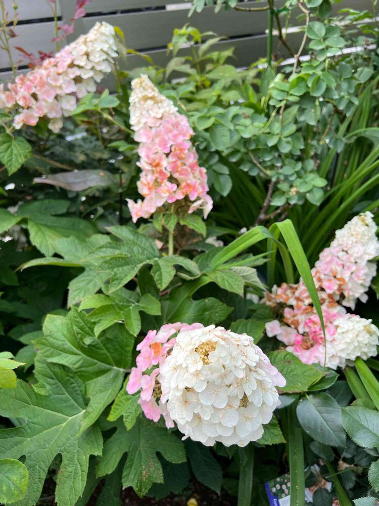 お隣から頂いたカシワバアジサイ、今年初めて花が咲いたので変化が楽しみなんです🤗