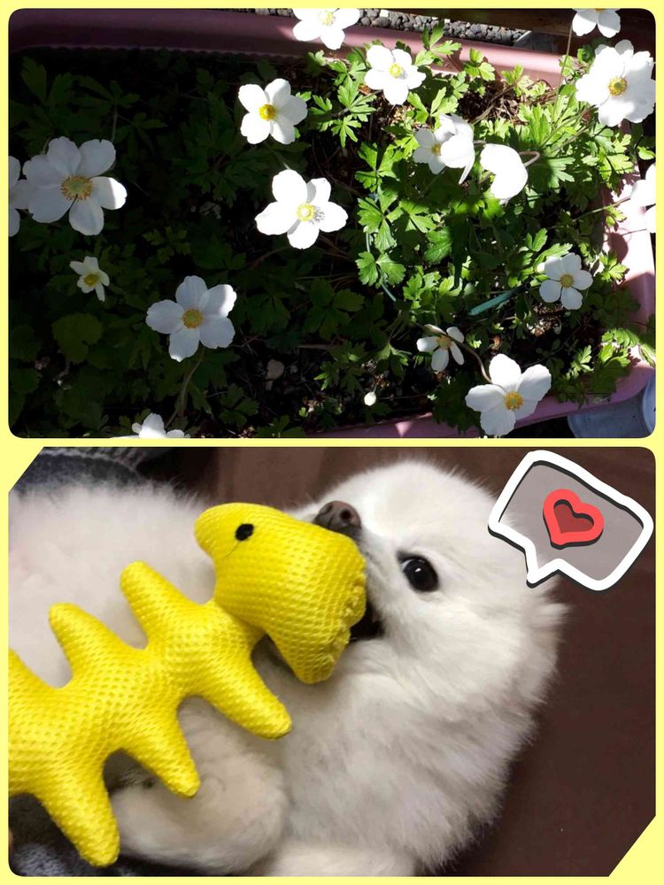 大福くんが、骨くわえて、猫😺さんになったか⁉️と~🤭、何しても可愛い~✌️でも、すぐに、破壊しそうね~🤣🤣
