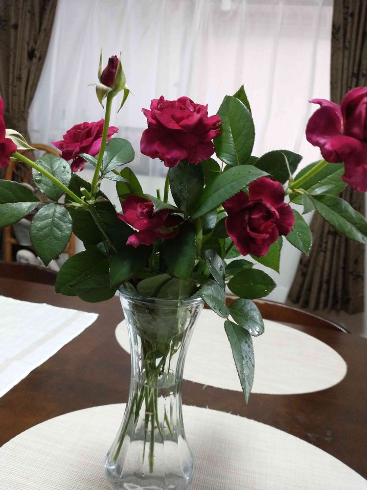 赤い薔薇の色は色々ありますが、この色はとても雰囲気を引き立ててくれるというか❓とてもシックでセンスがいいですね🎶(*´ω`*)