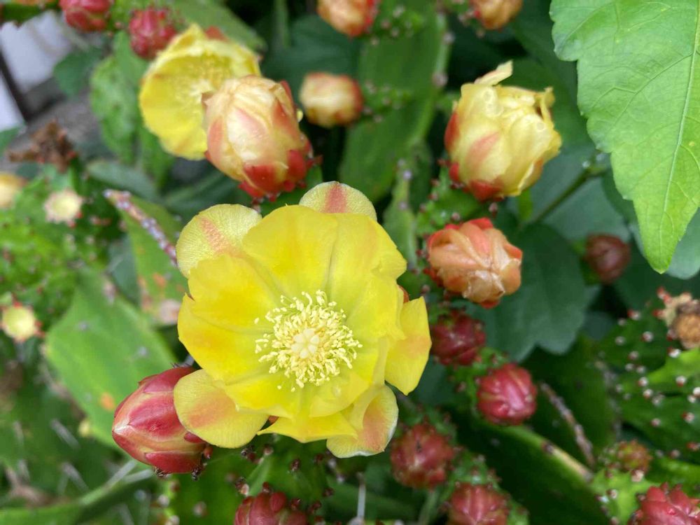 友だちのおうちのウチワサボテンに、花が咲きましたー🌼🌵