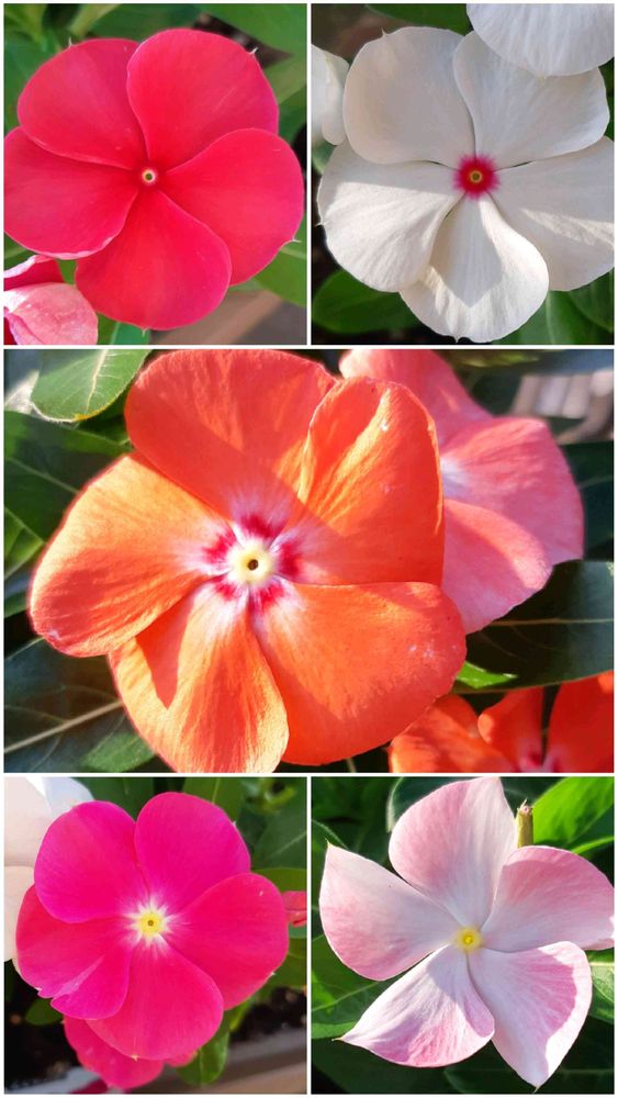 我が家の5種のニチニチソウ。今日帰ったら、お花が飛んでいってそうです…。