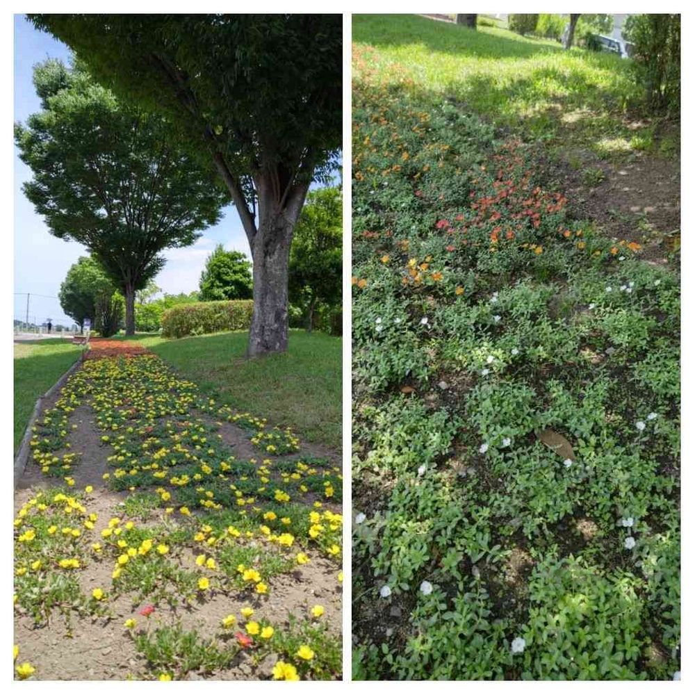 今日は、暑いですね!35度です!5月に自治会で花壇植えたポーチュラカの花、綺麗に咲き揃いました🥰