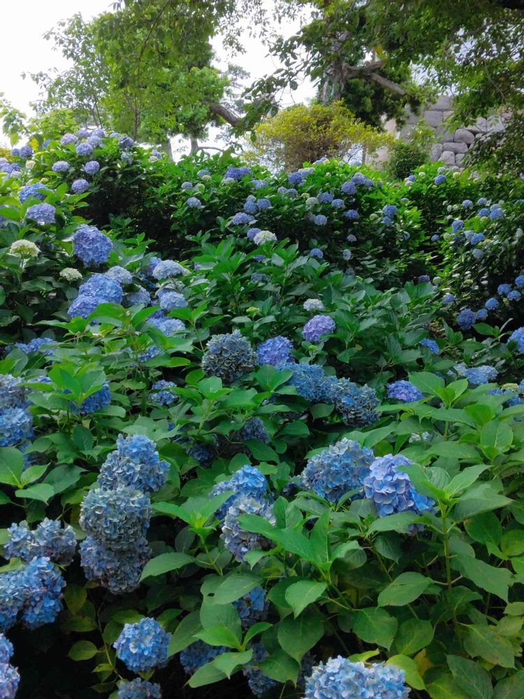 土手に紫陽花の大きな株がたくさん植えられていて、とっても綺麗でしたよ🤗💙💙💙🌿