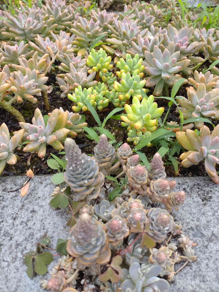 ブロックの隙間に生えてる子持ち蓮華がたまりません✨頑張って夏を乗り越えるんだぞ〜😖🌱✨