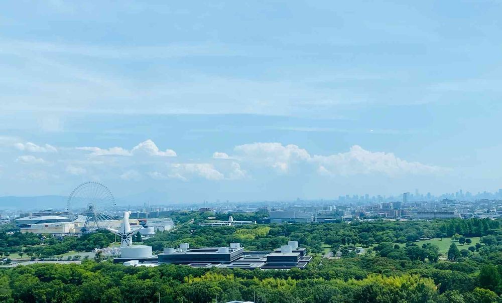 千里万博!月に一度は行ってたくさんの花々や木々に癒されています❣️この写真ははソラードから撮られたのかな?