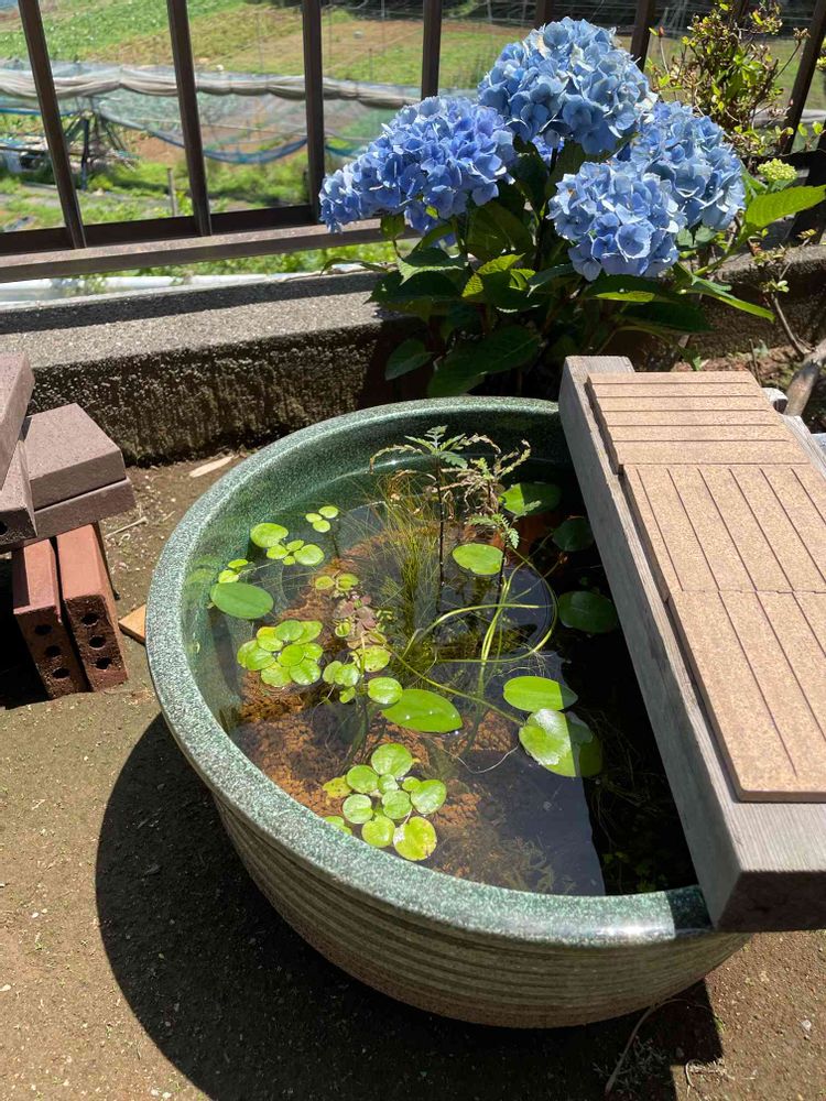 あおいさんの小さな庭,睡蓮鉢,アジサイ 紫陽花の投稿画像