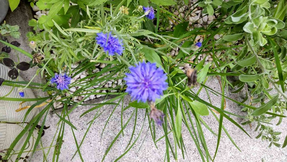 4月につぼみが付いていたセントーレア。2度も外壁塗装工事で踏まれて折れていたのですが、おかげで摘芯できて?何とか咲いてくれました。