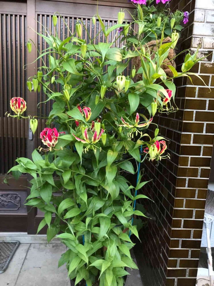 玄関,我が家の庭,グロリオサの花の投稿画像