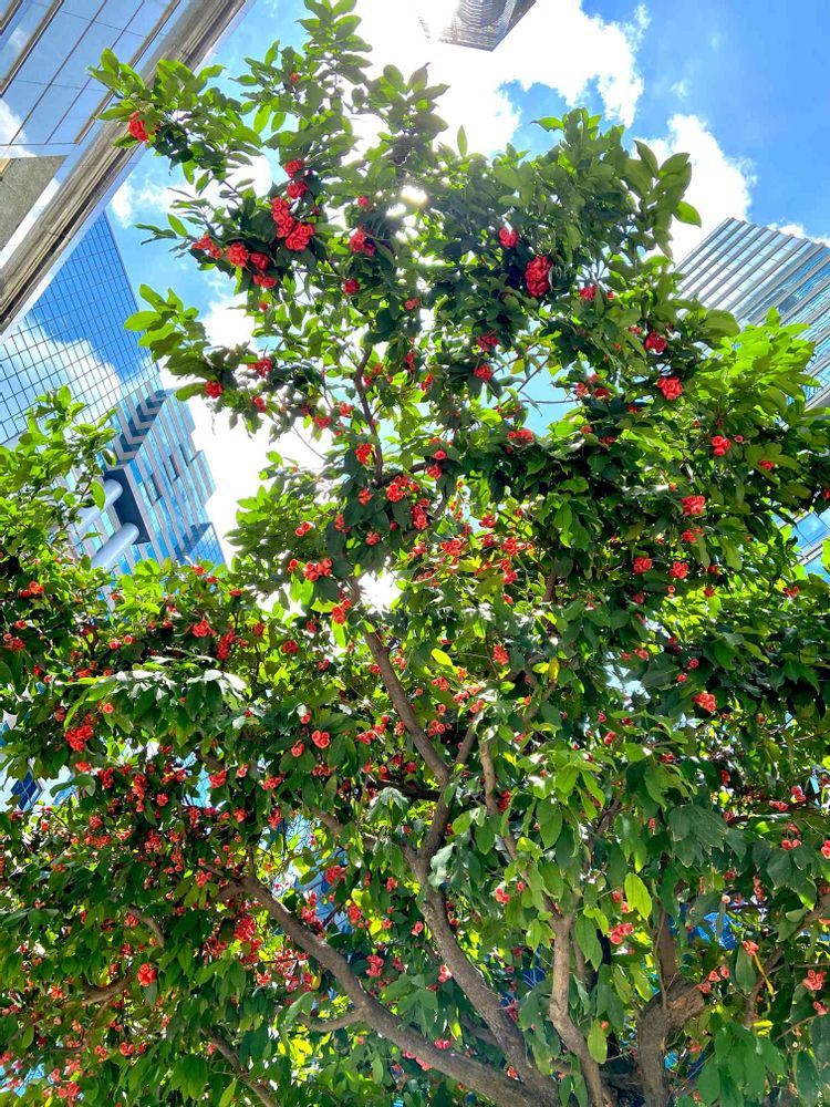 公園のレンブの木はたくさん実がなってるけど、あまりに高いところで写真はムリ💧って諦めてたら。。街のど真ん中、高級ブティック街で発見👀👀