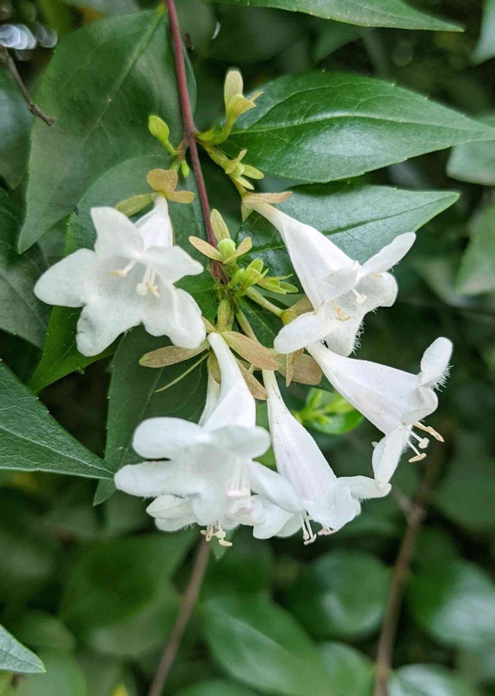 アベリアの萼は赤茶のものしか見た事が無かったので、このスッキリと美しいアベリアのお花にビックリしてます😲