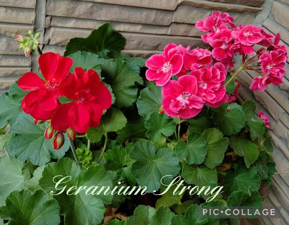 ゼラニウム•ストロング•コンパクトレッド&ディープローズウィズアイが、玄関で仲良く咲いてます💓(昨夕は猛暑でさすがに疲れ気味でした💦)