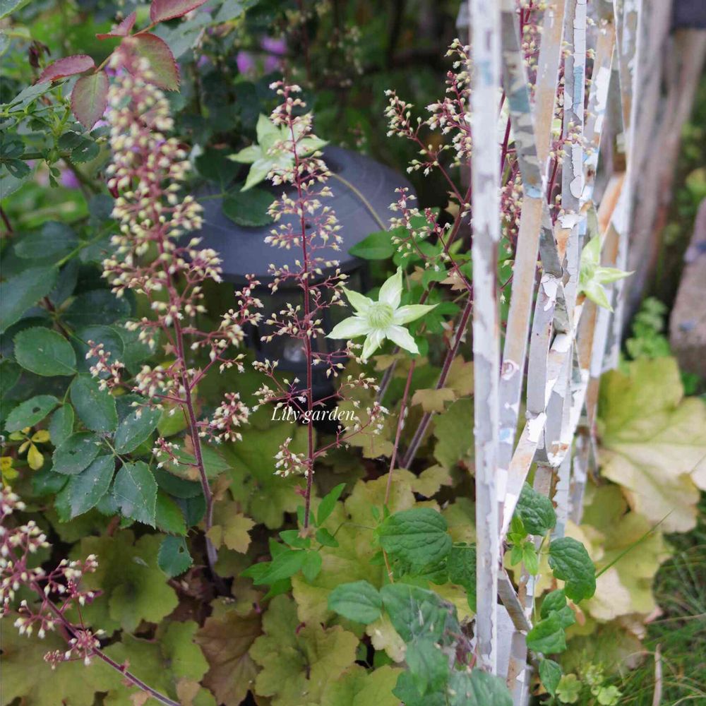 ヒューケラ(キャラメル)のチラチラしているお花と、ちょうど白万重が咲きはじめてお星様のようで可愛いです😌💓🌟
