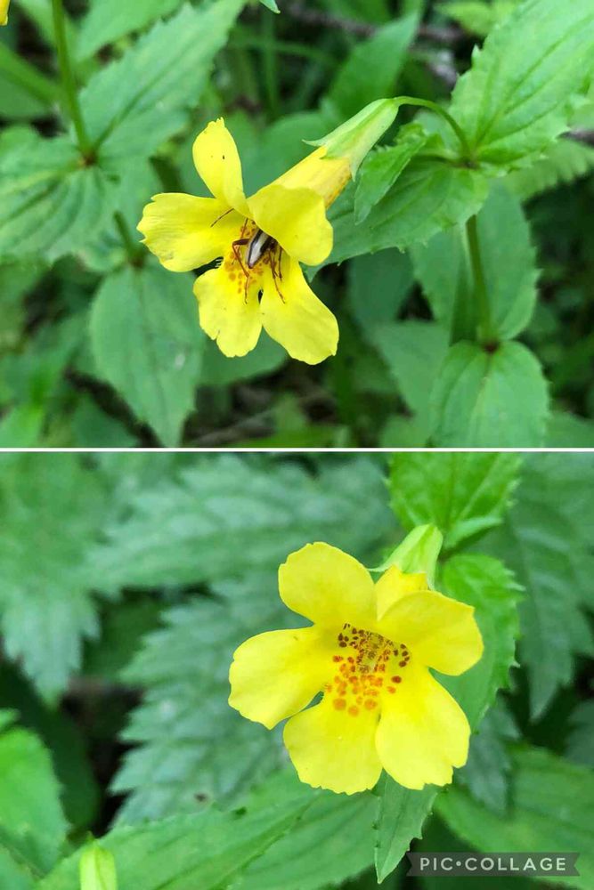 この日可愛い黄色花は「オオバミゾホオズキ」ですね。ミゾホオズキと違って花冠が大きく裂けます。どちらかというと日本海側の花ですね。