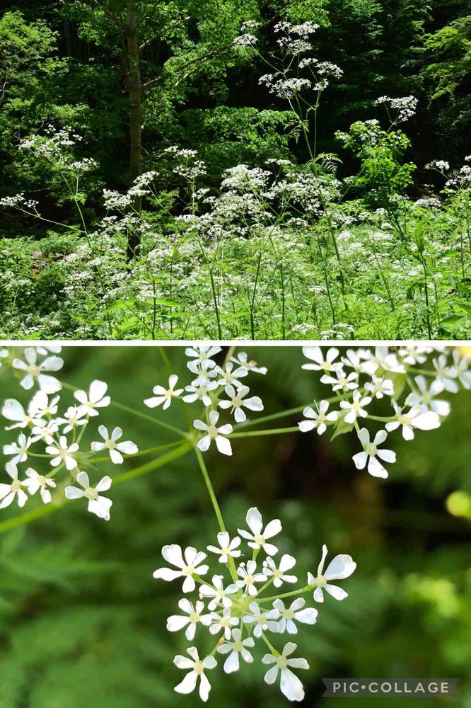 、その遊歩道にここでもセリ科の「シャク」が群生してました。今回は忘れずに花序を撮りましたよ😊