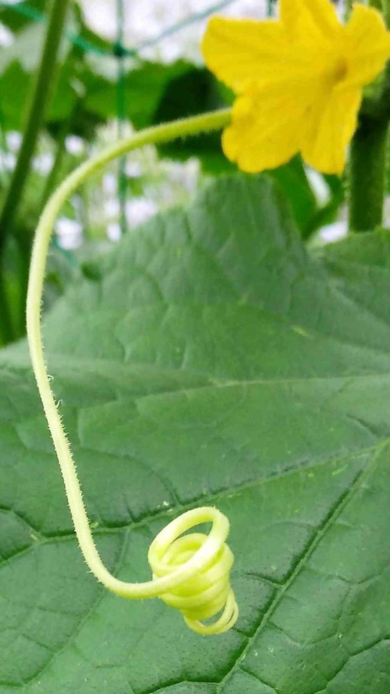 そんなのを見つけると、そっと手を開いてやって真っ直ぐ天に向かえるよう、支柱やネットをグッとつかまらせてやります😊