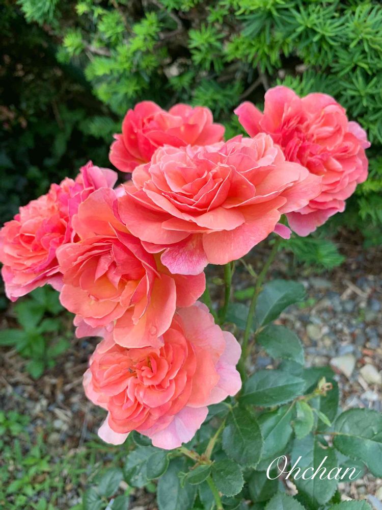 ピンクがかったオレンジ🧡色のバラで素敵ですね🍊
