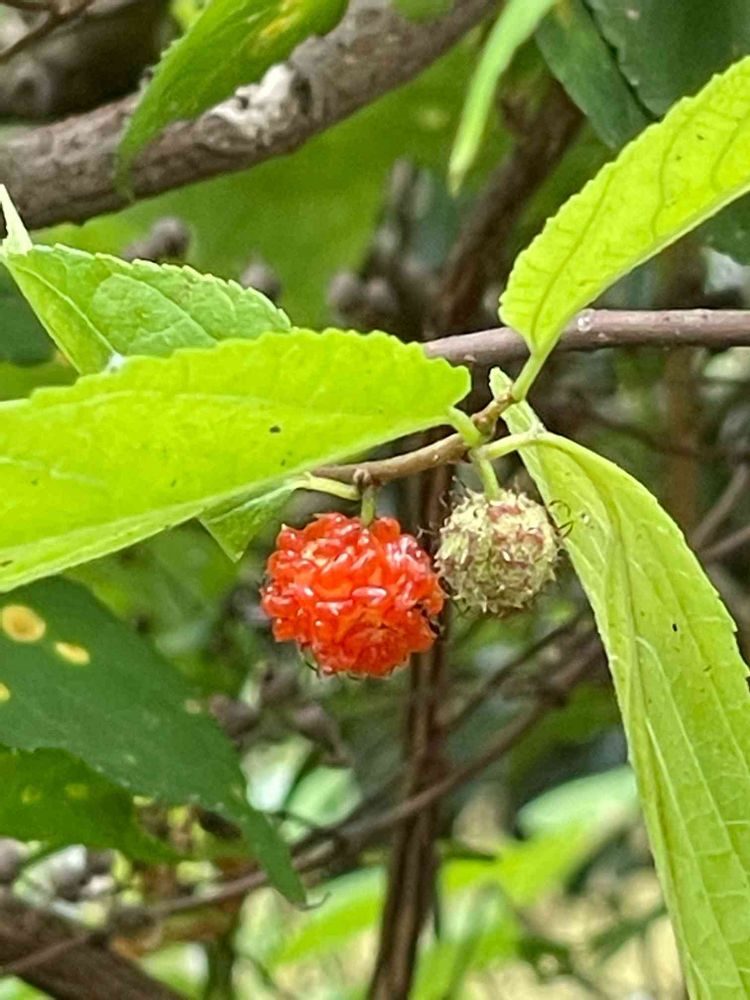 ちらっと寄った寺の山にヒメコウゾの実がなってました。