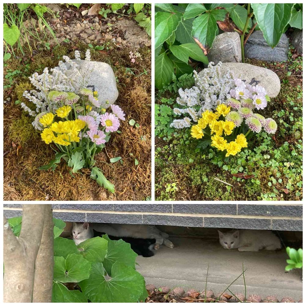 今回はあまり目新しいお花がなかったので、歴代ネコチャンズへのお供えは小菊各種です🌼