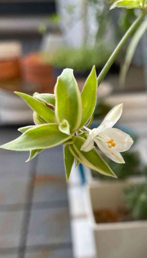 ダイソーシリーズ、オリズルラン。年初めくらいにお迎えしてやっとランナーが💕そしてお花も咲いてくれました👏増えるといいなあ😊