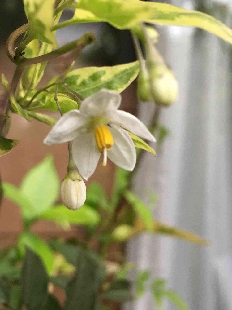 この子は蔓植物のヤマホロシ♪斑入り葉っぱだから花は白だけど、普通のは紫から白に変わる花で可愛いよん