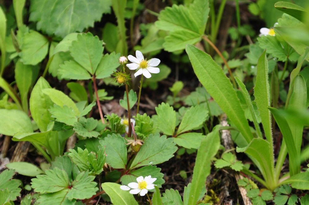 ロープウェイ駅から栂池自然園に行く途中に普通に咲いていたのでシロバナヘビイチゴなのかと思っていたら