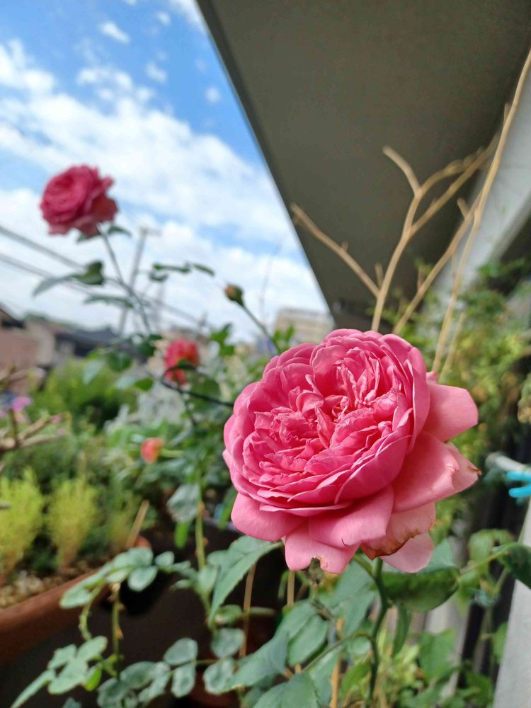 枝長く伸ばしてオリベスクなんかに誘引して沢山のお花咲かしてたのですが❣️うどん粉病になってしまい薬剤ふるため長い枝✂✂✂してベランダ端っこに持って行きました😅