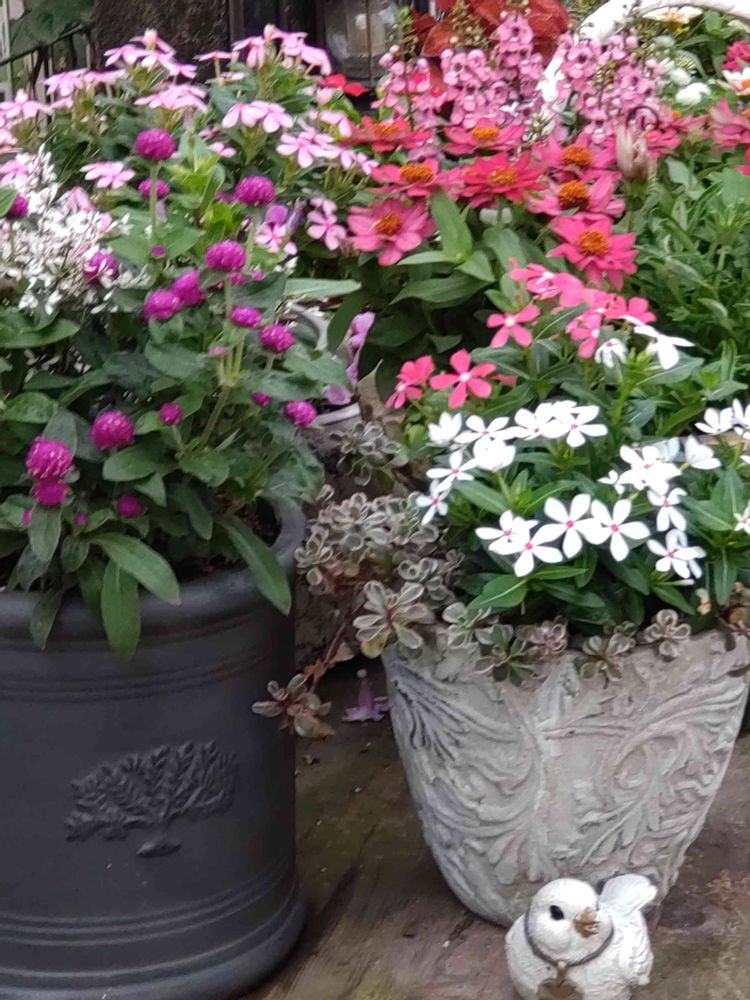 夏の寄植えたちが賑やかになってきました🥳ピンクの花が増えてきて💗以前ピンクが苦手だったことがウソのようです😅