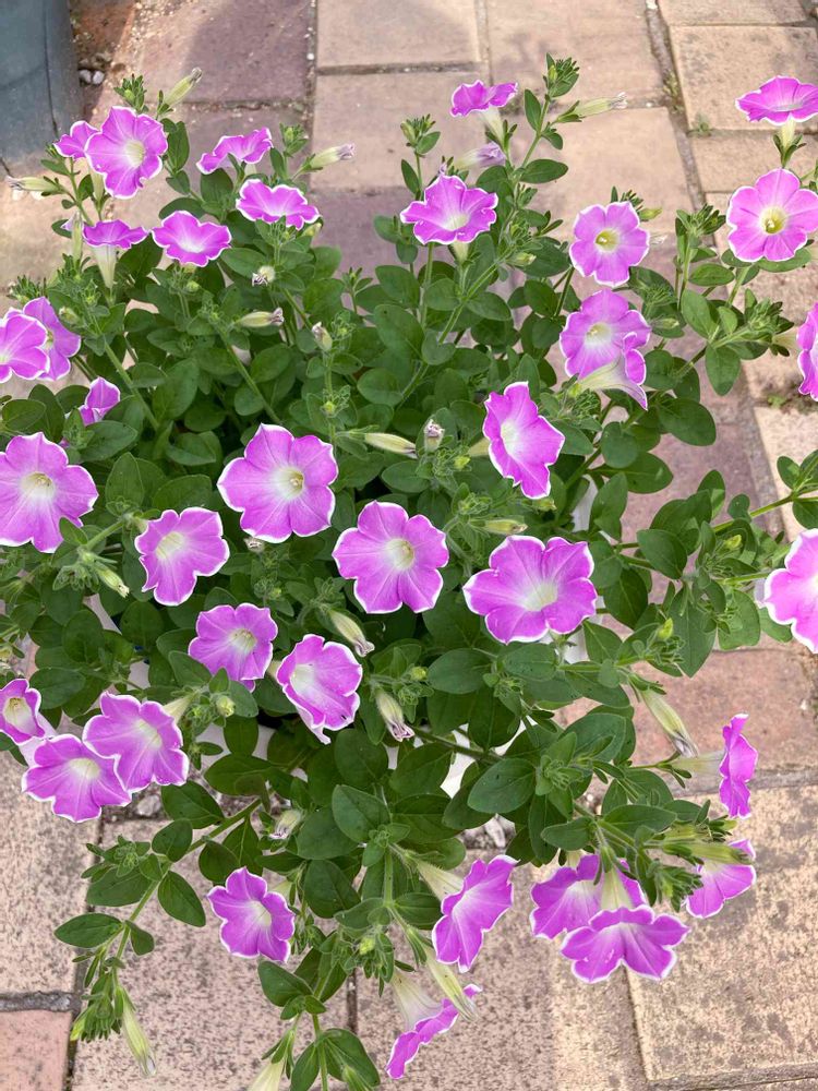 皆さんが簡単だよ!とおっしゃるサフィニアですが 私は毎年上手く咲かせられず💦今年は摘心を繰り返しました。まだまだこんな感じですが それでも嬉しいサフィニア初心者です