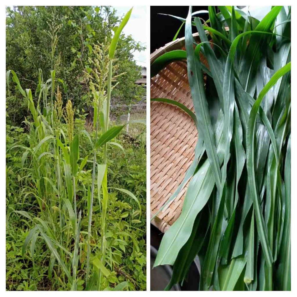 雨のやみ間に少し葉っぱを切りキッチンペーパーでホコリ取り このあと2 3日陰干しハサミで✂️✂️✂️ タカキビ茶の出来上がり お茶を入れる前に軽く焙じてから番茶のように煮出します。🤗