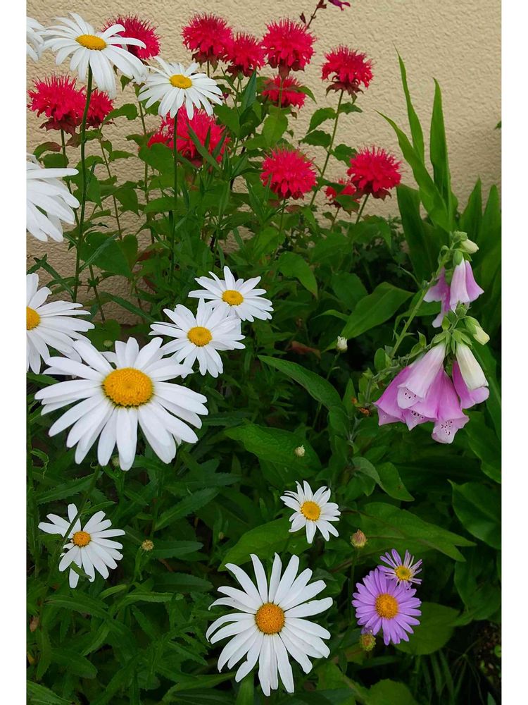 モナルダさんと、マーガレットかフランスギクか、、スッキリと素敵ですね!