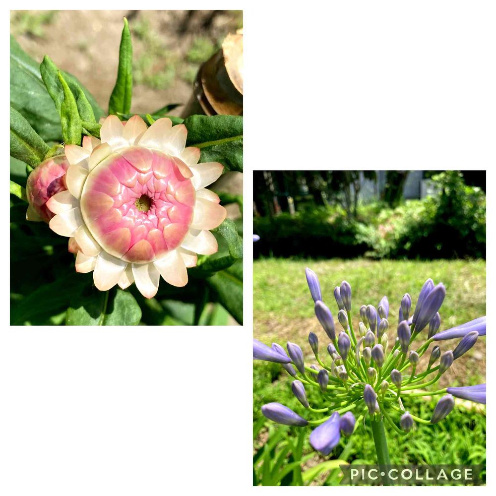 貝細工の薄いピンク色が可愛い❤️ですねぇ😃アガパンサスも涼やかな感じですよね😍💕今日畑は、暑かったでしょ( *´д)/(´д`、)昨日は風が有ってまだましでしたね😁我が家は昨日じゃがいもをやっとほりあげました( ̄ー ̄)